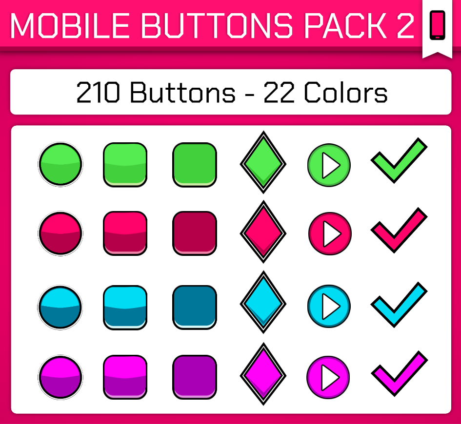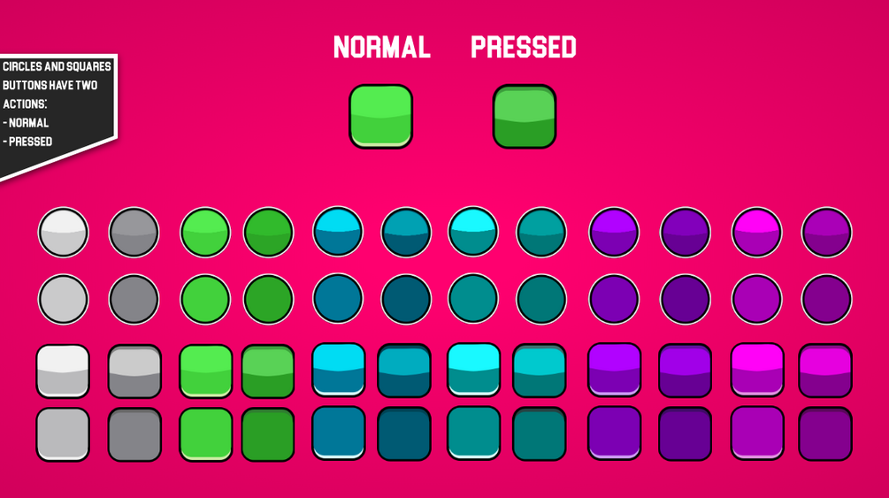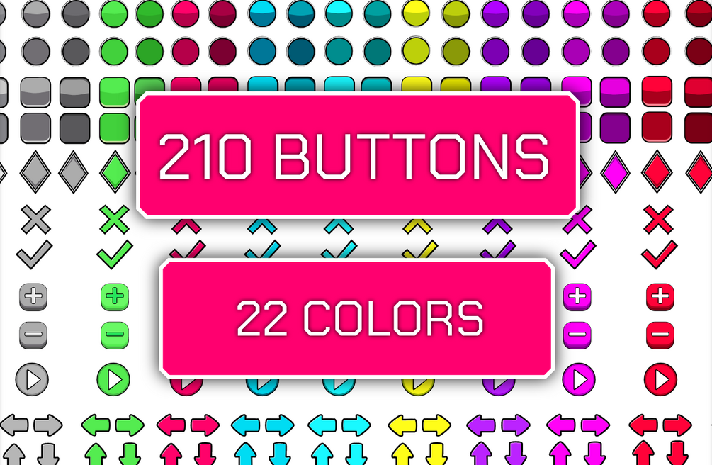 In addition to the separate PNG files with buttons I have attached a .svg file containing all the buttons that you can easily edit buttons in the above mentioned programs.